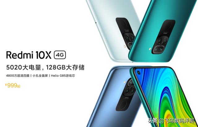 第三款,Redmi10X 4G版,Redmi10X 4G版不仅拥有128G超大内存,还是一款兼具性能和拍照的的千元旗舰机,首先是配备了一颗联发科G85处理器,安兔兔跑分超20万,后置4800万像素主摄+800万像素超广角镜头+200万微距镜头+200万人像景深镜头,前置是一颗1300万像素高清摄像头,拍照效果非常不错,不仅如此,Redmi10X 4G版还支持红外线遥控,智能操控家居设备不在话下,目前4G+128G版本售价999元。